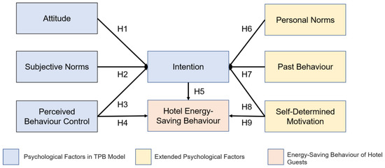 Some previous studies have looked at hotel guests’ waste reduction and water conservation behaviours [17,18,19]. For example, Han et al. (2020) explored the influence of normative, affective, and habitual factors on guests’ water conservation and towel reuse intentions, and another study revealed the impact of environmental awareness on young vacationers’ recycling and conservation intentions [19]. These studies have significant contributions to both promoting sustainable behaviour (e.g., [20]) and building and urban energy performance modelling (e.g., [21,22]). However, the psychological mechanisms behind hotel guests’ energy conservation behaviour remain underexplored. An in-depth understanding of guests’ energy conservation behavioural processes could therefore boost the development of effective interventions.