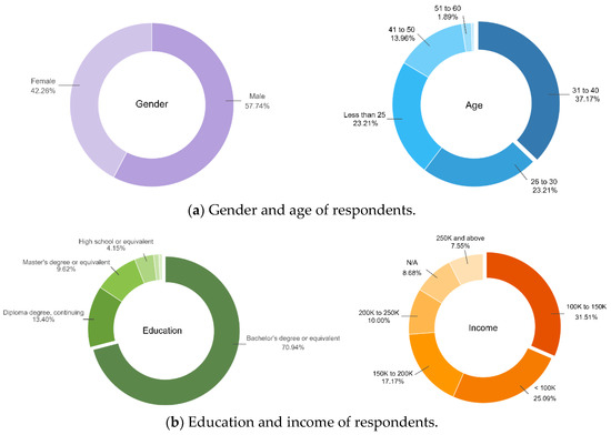 This research collected 530 valid responses, and Figure 3a,b illustrates the sociodemographic information of the respondents who provided valid responses.