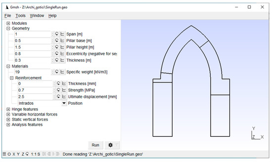 The automatic tool developed in Gmsh and previously described was exploited to perform an extensive parametric analysis on the seismic capacity of buttressed arches and to evaluate the expected enhancement due to the application of a FRM reinforcement at the intrados, extrados or both side of the arch only, i.e., not on the buttresses.