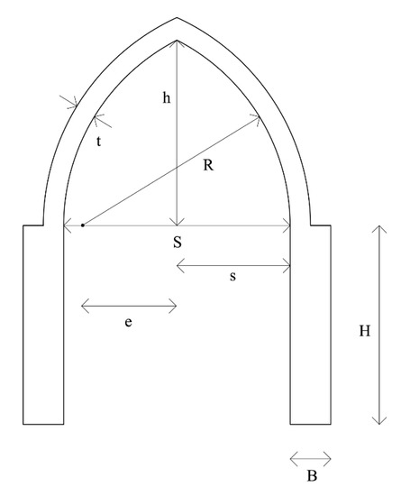 The geometrical characteristic of analysed arches can be completely defined by the following parameters (Figure 5):