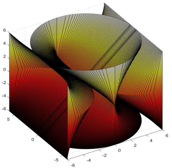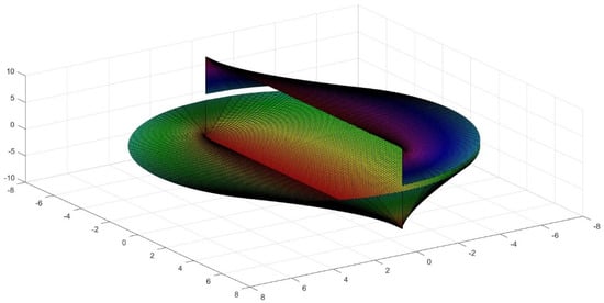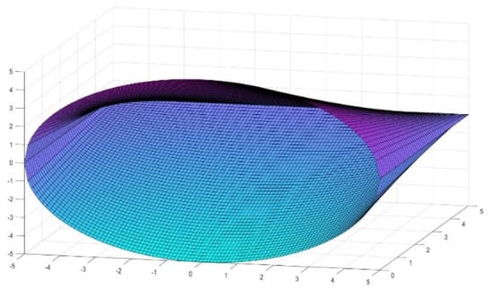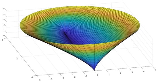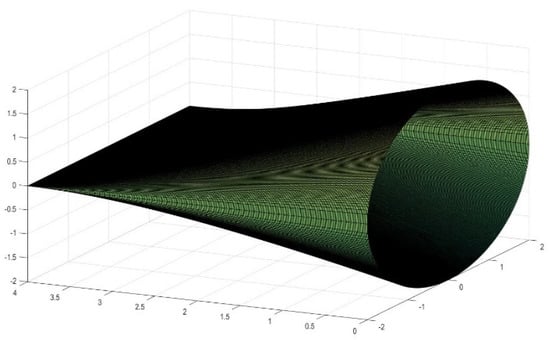 2.6. Calculations of the Area for an Elliptic Conoid