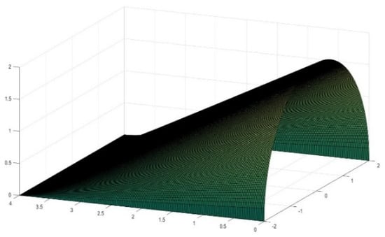 where R is the radius of the directrix in the case of a circumference and L is the length in the X-direction as shown in Figure 2. If we make L = R, it turns out that,