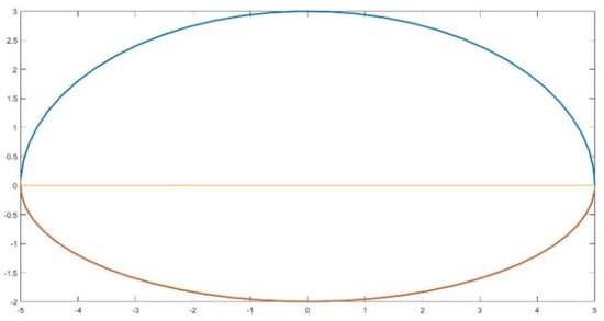 Thus, a = R and it is easy to prove that being R/L, the tangent of the angle formed by the middle section of the figure, the minor semi-axis is nothing but b = x × R/L. It should be noted that in the following calculations, the positive direction of the x-axis is reversed for simplicity from that in Figure 2 and the origin of coordinates is at the linear end of the figure and not at the extreme of the circumference.