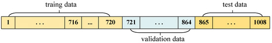 The experimental data used 1008 sets of actual measured data (each set of actual measured data contains 20 data) from 20 wireless sensor nodes during one week, it is divided into training set, validation set and test set for SVM and BP neural network model, and their distribution is shown in Figure 8. 1~720th sets of data (5 days) in training is for modeling, 721~864th sets of data (1 days) in validation are for verifying the effectiveness of the model, 865~1008th sets of data (1 days) in test are considered as test results to check the rationality of data distribution. It is noted that we did not follow the regular scaling law for the training-set, validation-set and test-set size ratio (usually 6:2:2), the actual ratio in this paper is 7:1.4:1.4. The reconstruction results are shown below. From the previous data loss analysis (Section 2), the data loss is less than 5 for most of time, thus linear interpolation can be employed in advance to replenish the lost data to guarantee data continuity, thus the selected training data are complete and continuous without outliers and missing data.