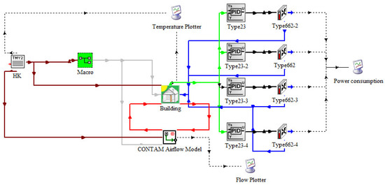 - Dols, W.S.; Wang, L.; Emmerich, S.J.; Polidoro, B.J. Development and application of an updated whole-building coupled ther-mal, airflow and contaminant transport simulation program (TRNSYS/CONTAM). J. Build. Perform. Simul. 2014, 8, 1–21. [Google Scholar]