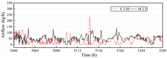 The airflow exchange calculated by CONTAM program between East and Middle.