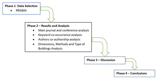 Phase 1—Data Collection: Following PRISMA guidelines [12], we conducted an evidence-based systematic review to select the best basis for reporting systematic reviews. Our adoption of PRISMA follows the literature trend of using such a method as a basis for reporting systematic reviews, especially evaluations of interventions [12]. The PRISMA guidelines consist of a flow diagram and a checklist. The flow diagram of conducting a PRISMA survey has four phases: identification, screening, eligibility, and inclusion, as depicted in Figure 2. The checklist proposes a pre-defined structure for a survey with different sections. In addition, there are precise guidelines to be followed and described in more detail in Section 3 [12]. As mentioned, we focused our analysis on ML or statistical approaches using the public build, residential, and office buildings.