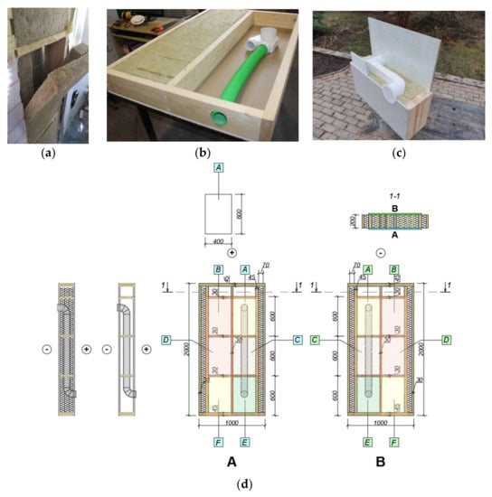 Sustainable [21,22] ballistic panel, thermal conductivity, and fire resistance of wooded construction panel with embedded air duct were analyzed for the various modelled exterior wall solutions. The main advantage of the proposed technology is fast and qualitative modular construction of unclassified buildings [23,24], providing all modern requirements not only for safety, but also for the energy efficiency and indoor air quality. Installation of ventilation systems also is a vitally import to ensure overall system suitability. Emission source control and ventilation are the two major ways to improve indoor air quality [25]. As well as proposed wall solution are unified prefabricated construction elements that significantly reduce construction time and reduce errors during the construction of buildings. Modular construction is one of the most efficient off-site construction methods [26,27]. The presented cases reflect the retrofitting solutions of existing external building envelope. To facilitate the construction process of a new building the wooden frame structures are considered in the scope of this research. Such structures allow precise control of materials and high assembly quality at factory during production. Also wooded frame construction can ensure erection of fast and comfortable temporary shelter development in comparison to mobile traditional tents [28,29].