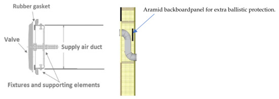 To minimize construction or retrofitting time, one of possible solution is to use integrated ventilation systems. Integrated ventilation systems could be local (room/floor scale) and centralized (building scale). However, integrated ventilations systems in the building structure compromises the ballistic protection of the same structure. Therefore, in scope of this paper extra ballistic protection was proposed. One of alternative solutions is integration of plastic ducts for installation of room-based ventilation. Plastic ducts have lower negative impact on thermal performance; 12 mm thick aramid based ballistic panels were investigated in this study to ensure bullet protection and material integrity (see Figure 2).