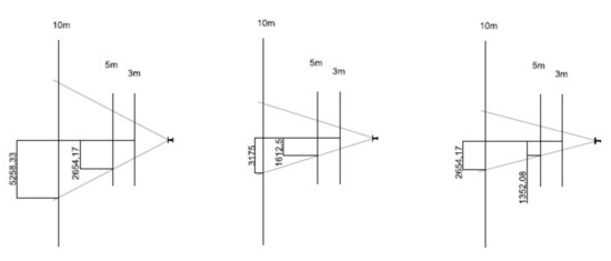 As it was mentioned before, the weakest point of integrated ventilation ducts is the risk of bullet penetration into the ballistic panel and duct intersection. Selection of extra ballistic protection strongly depends on the angle and distance of shooting. The possible shooting positions, angle projections, and the effect on the selection of extra ballistic panel dimensions are shown in Figure 12.