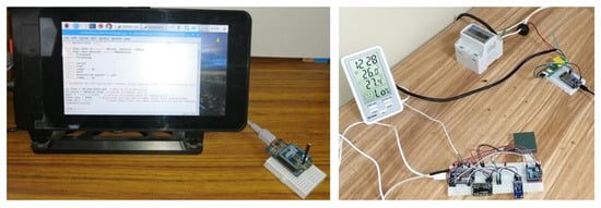 The complete system is implemented by connecting the sensor node, the electrical meter, and the actuator node with the Raspberry Pi, as shown in Figure 5.