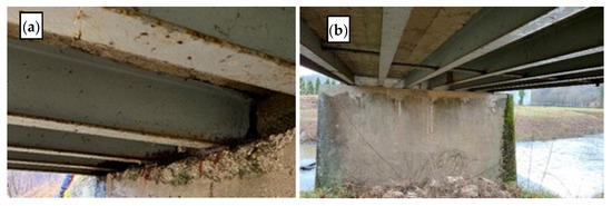 As a benefit of these examinations, many other durability-related problems and design flaws were also discovered (Table 1), demonstrating that the progressive deterioration of materials and elements had already started. All the examined bridges were lacking in regular maintenance or even periodical inspection to such a degree that rehabilitation work has been recommended for some. The common deficits observed for all the bridges are as follows: a lack of superstructure waterproofing, non-existent or failed drainage, the corrosion of reinforcement and/or structural steel, footways and consoles with missing parts of concrete and cornice, the cloggage of expansion joints (when they are present), and damage to the asphalt layer.