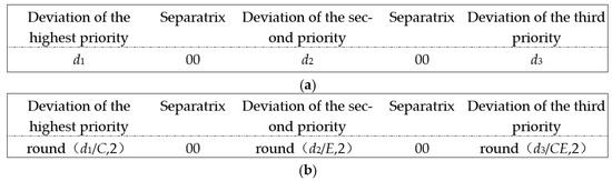 PyCharm platform is developed by Python-based computer code to integrate the entire optimization process of this case study. The code realizes the interaction between EnergyPlusTM simulation and the GA iterations. It contains two main parts: (1) automatic parameter assignment for the energy model and simulation in EnergyPlusTM; and (2) the GA-based optimization model establishment. The former part is used to generate the GA individuals in an effective and sequential manner. First, design parameters in the EnergyPlusTM input file are alternated based on the GA individual generation rules. Then, the EnergyPlusTM is called and driven automatically by the Python code, and the energy consumption evaluation index is output as a part of the individual fitness calculation basis. The latter part is responsible for the GA solution. The new individuals generated in the process are then returned to the EnergyPlusTM simulation to evaluate their energy performance. Due to the GPM evaluation approach, a specific fitness evaluation standard is pre-defined, which helps the optimization model to meet the expected optimization goals. For example, based on the Scenario 1 basic form, different weights are given to three deviations, respectively, to compare their fitness values. Deviation with high priority is given a higher order of magnitude, and the deviations are separated by the separatrix “00”. The initial expression of the individual fitness is presented in Figure 4a. Considering that the overlong single deviation can influence the low priority objectives, the function “round( )” is applied to restrict the length of the deviations. Simultaneously, in order to ensure the quality of the optimization result, deviations are delivered through a relative deviation form. In addition, for the scenarios considering the convergence direction, the penalty function “punish = −10” is introduced in the unsatisfied items. The revised individual fitness is shown in Figure 4b.