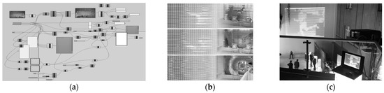 (a) Parametric definition; (b) Parametric change in visuals according to the movement in the environment; (c) Timisoara, Romania 2016 EDU Symposium Interactive Projection. Team members: arch. Adrian Mihai, arch. Alma-Dia Hapenciuc, arch. Oana Grecea.