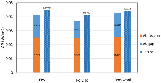 Fasteners and Gaps: Comparison of the Calculated and Tested Thermal Transmittance, ΔU.