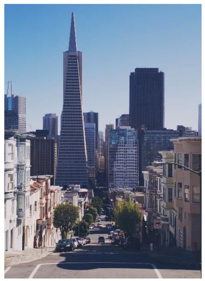 Pyramid form of a skyscraper—Transamerica in San Francisco, design by W.L. Pereira, 1972. Source: Wikimedia Commons.
