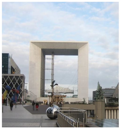 Gate/triumphal arch form of a skyscraper—La Grande Arche in Paris, design by J.O. von Spreckelsen, 1989. Source: Wikimedia Commons.