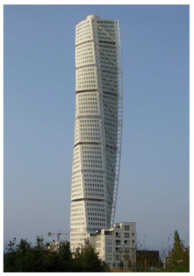 Twisted form of a skyscraper—Turning Torso in Malmo, design by S. Calatrava, 2001. Source: Wikimedia Commons.