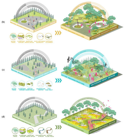 - Lian, Y.; Ou, D.; Pan, S.; Yang, L. An evaluation study on soundscape of different landscape space types. Build. Sci. 2020, 36, 57–63. (In Chinese) [Google Scholar]