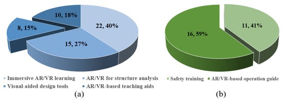 (a) The percentage of AR/VR applications in education. (b) The percentage of AR/VR applications in training.