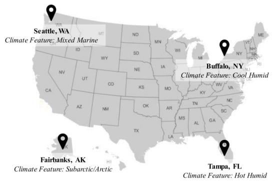 - Chen, Y.; Hong, T.; Piette, M.A. Automatic generation and simulation of urban building energy models based on city datasets for city-scale building retrofit analysis. Appl. Energy 2017, 205, 323–335. [Google Scholar] [CrossRef]