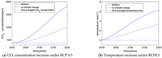 The Intergovernmental Panel on Climate Change (IPCC) has proposed several representative concentration pathways (RCPs), such as RCP2.6, RCP4.5, RCP6.0, and RCP8.5 [36], representing various global warming scenarios. Among these scenarios, RCP8.5 features the greatest increase in CO2 concentration and temperature. This study considered the effect of RCP8.5 on optimal design, thereby introducing the effect of global warming.