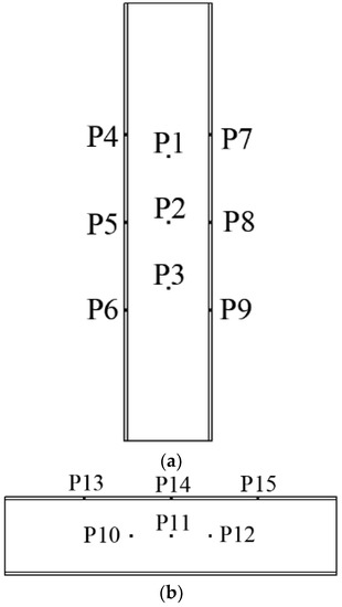 Temperature measuring points in the fire resistance test of the H-shaped steel (a) column and (b) beam.