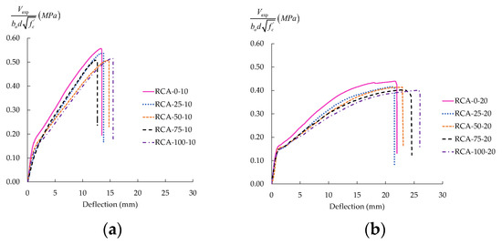Mahmoud et al. [43] investigated the punching shear behavior of RAC slabs with 0%, 30%, 60%, and 100% and two sizes (12.5 and 25 mm) of RCA. The authors reported that punching shear decreased as the replacement of NCA with RCA increased. Xiao et al. [44] also tested RAC slabs with and without steel fibers. Their findings indicated that the punching shear capacity of RAC slabs without fibers, ductility, and energy dissipation decreased with increasing levels of RCA replacement.