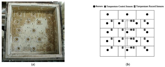 (a) Full-scale door/wall refractory furnace; (b) positions of thermocouples inside the furnace.