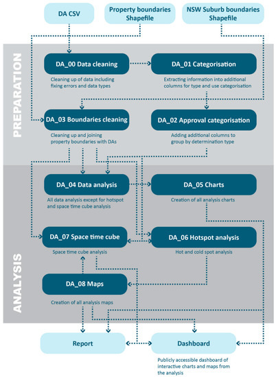 As a key thinking behind this study is to build the foundation for future, further analysis, JupyterLab is also used to give better structure and documentation to the Python code by keeping code for different processes in different notebooks (refer Figure 6 for the overall workflow). More details on data preparation and analysis will be covered later in this section.