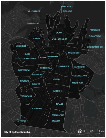 - City of Sydney. City of Sydney Community Profile. Available online: https://profile.id.com.au/sydney (accessed on 11 June 2022).
