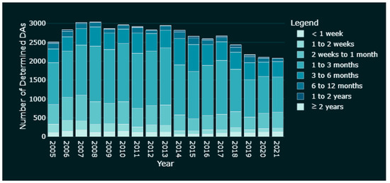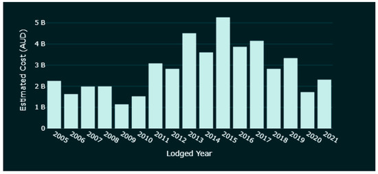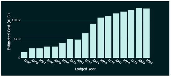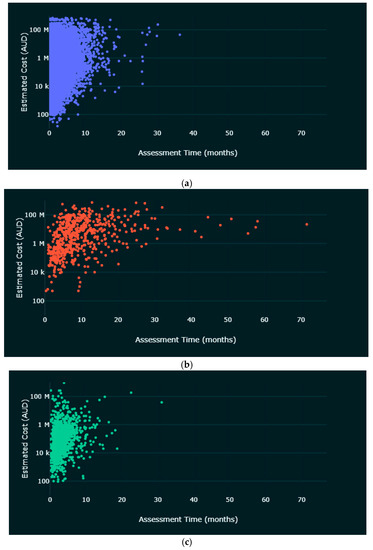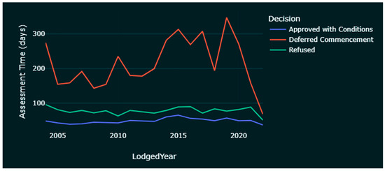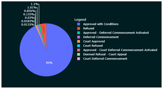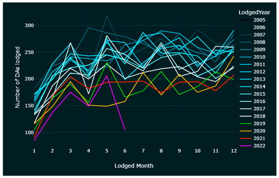 Firstly, not all development requires approval. Works such as ‘minor renovations and low-impact works’ fall under exempt development and do not need approval from authorities [17]. Complying developments involve larger works than the above, but only need sign-off from a certifying authority to obtain a complying development certificate (CDC) [18]. Examples of such development include building a granny flat, a swimming pool, or removing a tree. These two categories are not included in this study due to limited data availability and the minor nature of this type of work. Since July 2021, all CDC applications are to be lodged via the NSW Planning Portal [18]. As the records become substantial, they could be included in a future extension of this research.