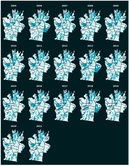This research is GIS based as it has a proven record in similar spatiotemporal research of development patterns [39,41,42,43,44]. It also allows potential future expansion of this study, should more development data be released by the government.