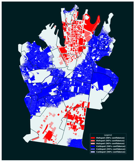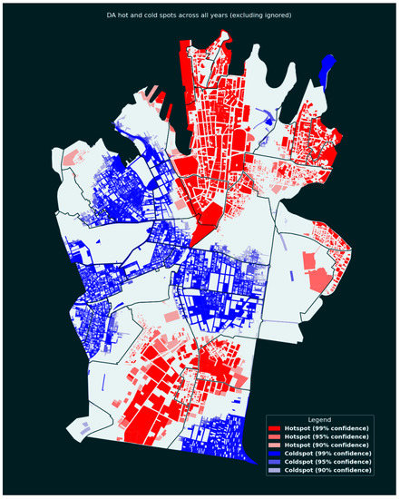 The results show a heavy development focus on specific suburbs such as the Sydney CBD and Zetland, both in terms of number of DAs and total estimated costs. Cold spots were identified in the west and the middle of the LGA, such as the localities of Glebe, Newtown, Erskineville, Eveleigh and Redfern, corresponding with a higher concentration of heritage conservation areas.