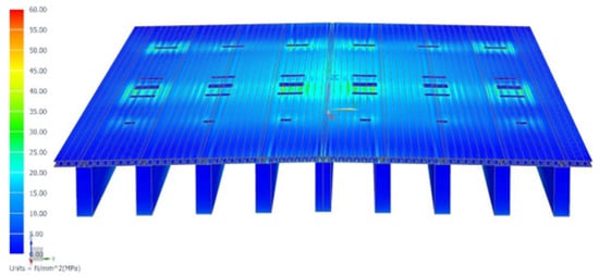 Here, the aluminum deck is sized and designed for 75 years of life under the specified traffic loads. Note that it was found that the fatigue limit state controls the design of the aluminum deck, while the ultimate limit state induces a maximum von-Mises stress of
