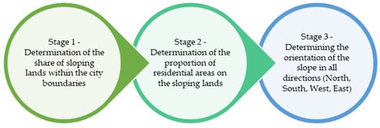 2.1.2. Determining the Percentage of Residential Areas on the Sloping Lands of AZRF Cities and Towns