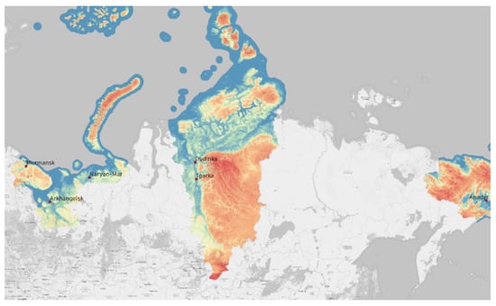 - Alekseev, G.V.; Antipov, S.K.; Afonichkin, A.I.; Afonichkina, E.A.; Baburov, S.V.; Balashova, E.S.; YUshkov, O.A.; Panov, D.V.; Komkov, N.I.; Frolov, I.E.; et al. The Arctic Space of Russia in the XXI Century: Development Factors, Management Organization; Publishing House “Nauka”: Saint Petersburg, Russia, 2016; 1016p. [Google Scholar]