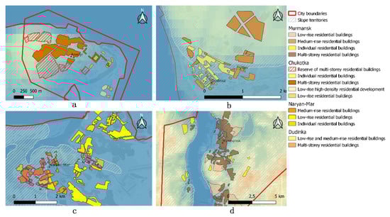 2.1. Analysis of Geomorphological Parameters of Residential Development on the Sloping Lands of the Arctic Zone of the Russian Federation