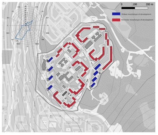 | Morphotype 2 Perimeter Semi-Enclosed Development with a Shared Courtyard | Morphotype 3 Ribbon Development Composed of Highly Maneuverable Individual Buildings on the Slope | Morphotype 4 Sporadic Curvilinear Ribbon Development |