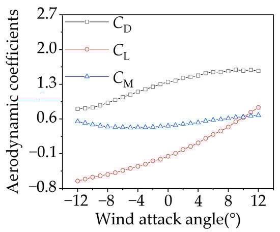 Under the wind axis system, the aerodynamic drag coefficient CD, aerodynamic lift coefficient CL, and aerodynamic moment coefficient CM are defined as follows: