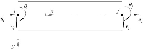 Figure 2 illustrates a beam element having nodal displacement re = {ui, uj, vi, vj, θi, θj}T. Assume that axial and transverse displacements are linear and cubic polynomial functions, respectively. The element tangent equilibrium equations are expressed by