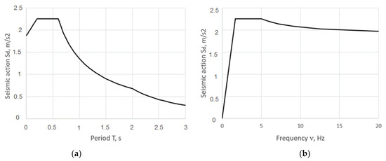 For the seismic action, a computed spectrum of response was assumed for the horizontal component of the seismic action under EN 1998-1 (Figure 2). The type of spectrum was 1.2, and the type of soil was C. Calculated soil acceleration accounts for .