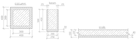 - floor slabwhere (), ()—the initial width (height) of the column and beam cross-section, respectively;