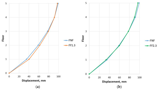 Axial sixth oscillation mode: (a) for frame FNF; (b) for frame FF1.3.