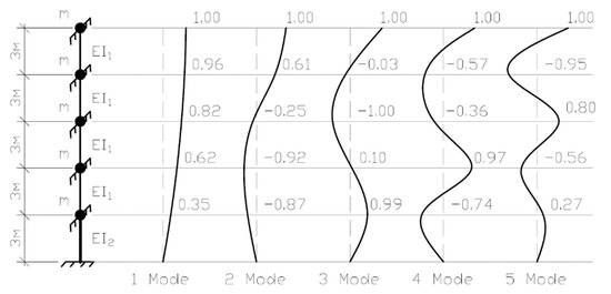 It could be noted that the intercept term in the brackets of the fifth equation in the system (15) has the value of 1.83 but not 2 that proves the lower total stiffness of the 1st floor columns.