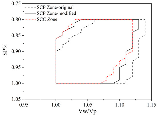 Based on the test results, the original and modified SCP zones were obtained, as shown in the black dashed and solid lines in Figure 6. The SCC zone is shown as the red short dashed line in Figure 6.