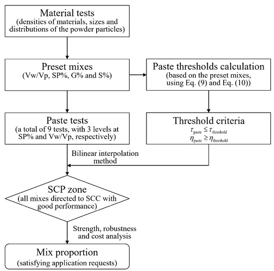 Thus, the mix design method for multiplexed powder SCC is proposed, the design process is shown in Figure 12.