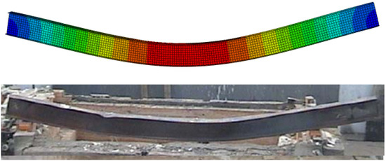 According to the finite element model and the experimental data, we can make a comparison of the maximum displacement values of the beam center position of the two methods. The results obtained by the two methods are in excellent agreement.