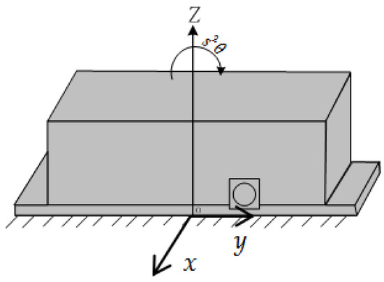 The RA013 accelerometer, a type of sensor widely used to measure the rotational acceleration of structure, shows excellent performance in linearity, ultra-low frequency and large scale dynamic measurement. The specifications of RA013 accelerometer are as follows: the pass band is 0.01~20 Hz, the resolution is less than or equal to 2 × 10−4 rad/s2, the size is 330 mm × 130 mm × 105 mm and the weight is about 6 kg. Figure 4 demonstrates the rotating sensitive axis of the rotating accelerometer. The z axis perpendicular to the base plate of the rotational accelerometer is the rotating sensitive axis of the rotational accelerometer. The installation method showned in Figure 4 measures the rotation acceleration around the z axis. When measuring the rotation acceleration around the x axis, the rotational accelerometer is turned inward by 90° (i.e., with the output plug upward). When measuring the rotational acceleration around the y axis(Yang et al., 2015 [25]).