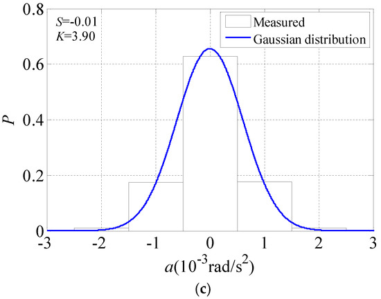 In Equations (3) and (4), n is the sample size, is the sample mean value and is the sample standard deviation. Figure 12 presents the measured acceleration probability density curve on the 32nd floor as symmetrical and that the skewness and kurtosis coefficients along x axis were 0.00 and 4.36, respectively, while they were 0.00 and 3.24, respectively, along the y axis. The skewness and kurtosis coefficients along the torsion direction were 0.01 and 3.90, respectively. Although the measured acceleration data are very close to the Gaussian distribution characteristics, especially along the Y axis, they still show non-Gaussian characteristics.